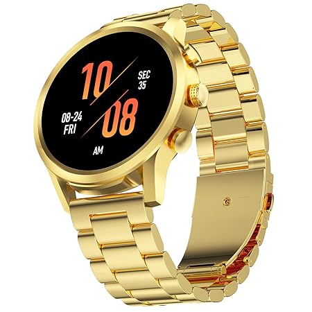 Fire-Boltt Newly Launched Infinity Luxe Vivid 1.6” HD Round Display, Stainless Steel Luxury Smartwatch 4GB Inbuilt Storage, Bluetooth Calling, TWS Connectivity, 100+ Watch Faces (Gold)